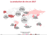 La producció mundial de vi (exclosos sucs i mosts) va arribar, el 2017, els 250 Mill. HL, fet que suposa un retrocés del 8,6% respecte a la producció de 2016. Itàlia (42,5 Mill. HL) es afermar com a primer productor mundial, seguit de França (36,7 Mill. hL) i Espanya (32,1 Mill. hL). El nivell de producció va seguir sent elevat en els Estats Units (23,3 Mill. HL) ia Austràlia (13,7 Mill. HL).
